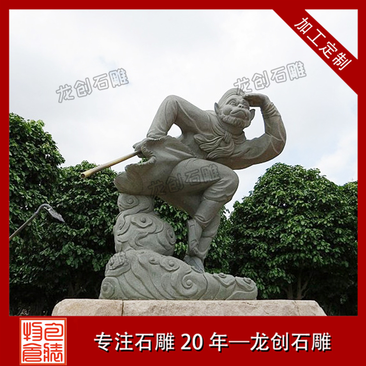 石雕 悟空:他天敏,思想跟行動都如風,學得一身高強的,吹一口氣,就能夠七十二變,并且有法寶金箍棒,縮小如針,放大如銅棒,筋斗云一駕,就能夠上天下地。悟空仍有猴性,他精明頑皮,愛作弄。
