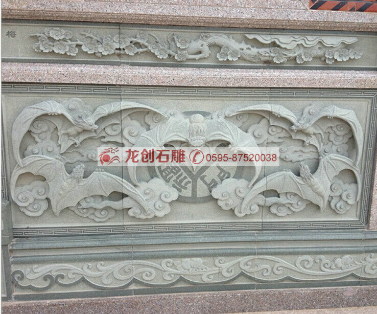 吉祥浮雕裝飾和室內外浮雕墻藝術設計制作 高浮雕與淺浮雕兩種形式常常互相結合對應。例如云崗石窟中的釋迎坐佛,主體近似圓雕,而背面墻上的飛天、云紋均采用低浮雕手法處理。
