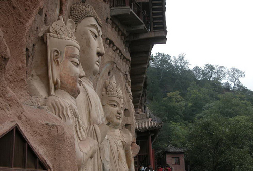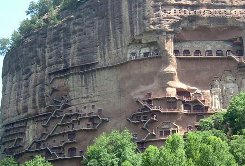 麥積山石窟為中國四大石窟之一,其它三窟為:龍門石窟、云岡石窟和敦煌莫高窟。麥積山石窟屬全國重點文物保護(hù)單位,也是聞名世界的藝術(shù)寶庫。麥積山位于甘肅省天水市東南約35公里處,是我國秦嶺山脈西端小隴山中的一座奇峰,海拔1742米,但山高離地面只有142米,山的形狀奇特,孤峰突起,猶如麥垛,因此人們稱之為麥積山。