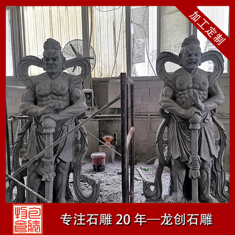 石雕哼哈二將是常見的石雕佛像,大部分安裝在寺廟,以下是近期我們雕刻完成并安裝的哼哈二將雕像。