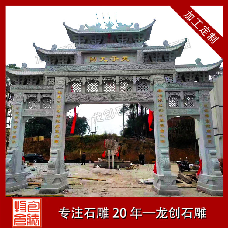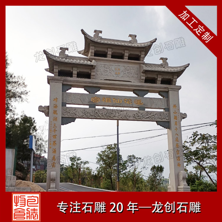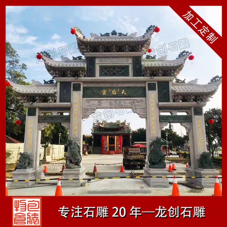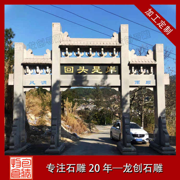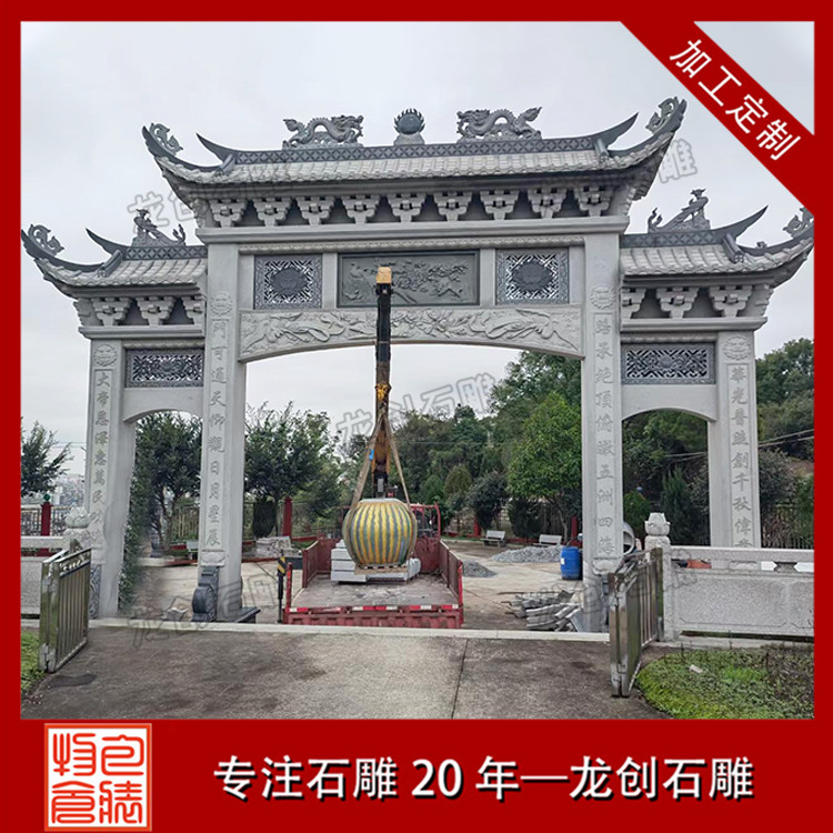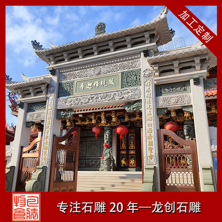 石雕山門作為寺廟的重要入口,其設計和制作都非常講究。首先,山門的造型要與寺廟的整體建筑風格相協調,既要體現出寺廟的莊嚴肅穆,又要彰顯出寺廟的獨特韻味。其次,石雕山門的雕刻工藝要求非常高,既要表現出線條的流暢美感,又要彰顯出雕刻技法的高超。最后,石雕山門的顏色也是非常重要的,通常選用深色系的石材,以突顯出寺廟的神秘色彩。