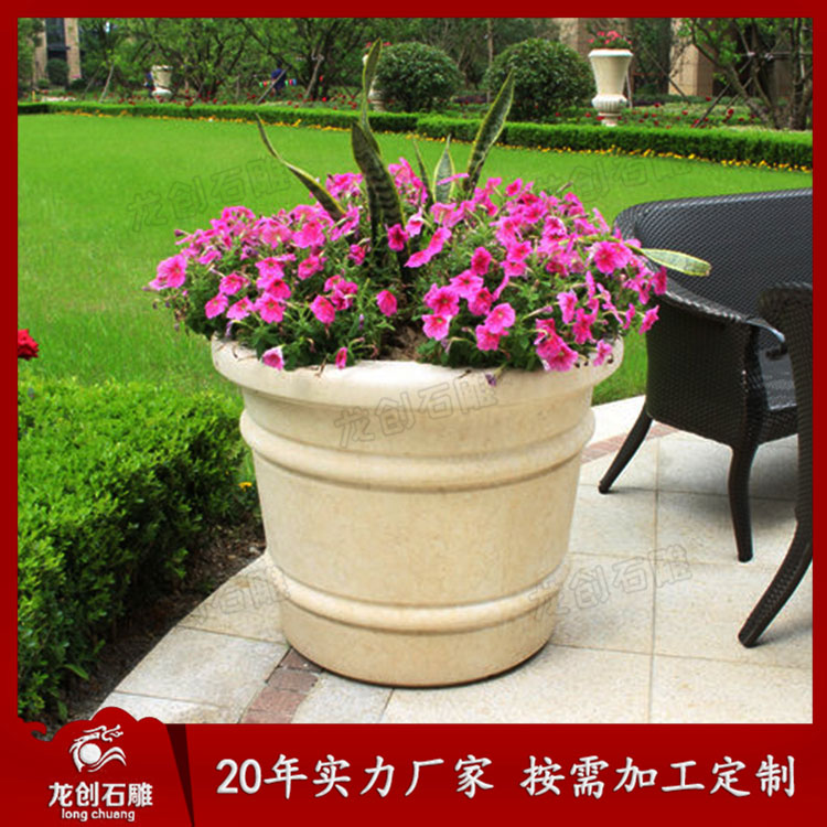 各類石雕花盆花缽是用各類石頭加工而成的盆栽器皿,常用于擺放在公園、廣場、街道兩側或是公寓別墅庭院作為景觀園林盆栽盆景雕塑裝飾藝術品。石雕花盆花缽的種類和款式有很多種。由于石雕藝術呈現形式和設計的多變性和多元素性,石雕花盆有很多可選性,觀賞價值和使用價值更高。