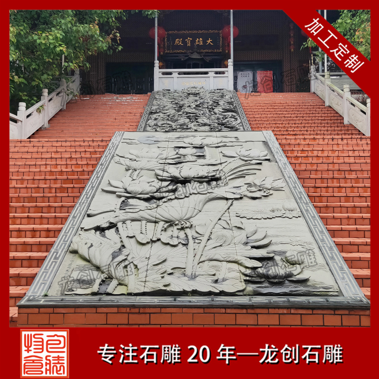 我們去寺廟燒香拜佛,總會在大殿門口臺階看到石浮雕,看到比較多的圖案是九龍浮雕,有些人也會把寺廟臺階浮雕叫做寺廟浮雕地雕,關于寺廟浮雕地雕樣式除了九龍浮雕外,還會有蓮花、獅子等等。
