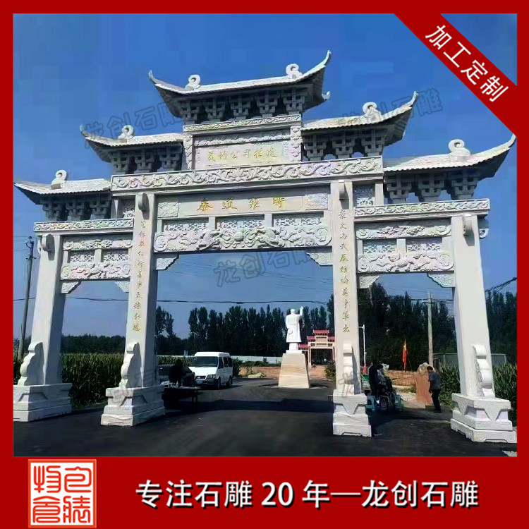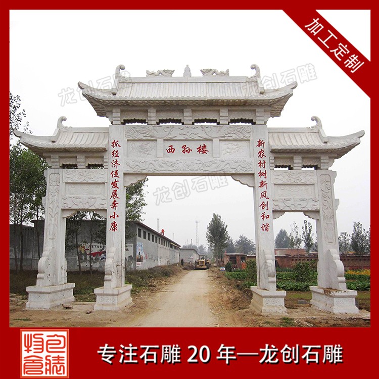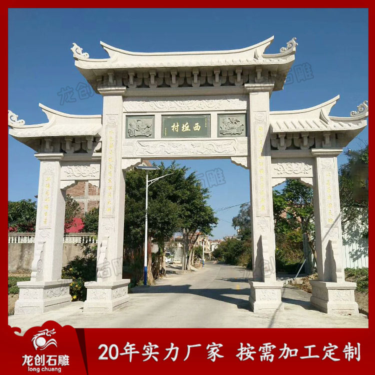 石雕牌坊是我國傳統古建筑的一部分,村莊石雕牌坊也稱村口石雕牌坊、農村石雕牌坊,一般是建在村莊的入口處,村莊石雕牌坊是一種仿古建筑,古樸大方,具有很高的歷史文化價值和觀賞價值。