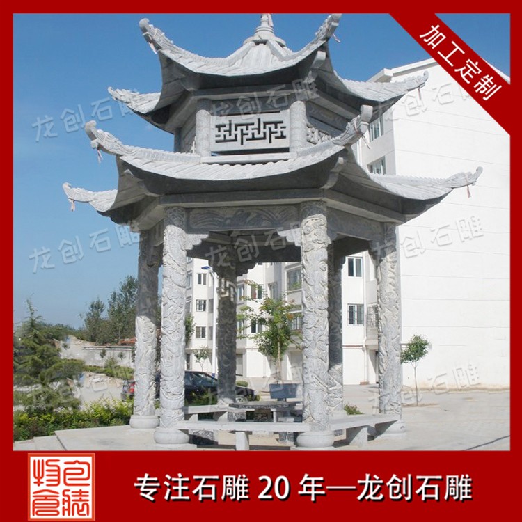 這些部分共同構成了石雕亭子的完整組成結構,每個部分都經過精心設計和雕刻,以展現其獨特的美感和藝術價值。