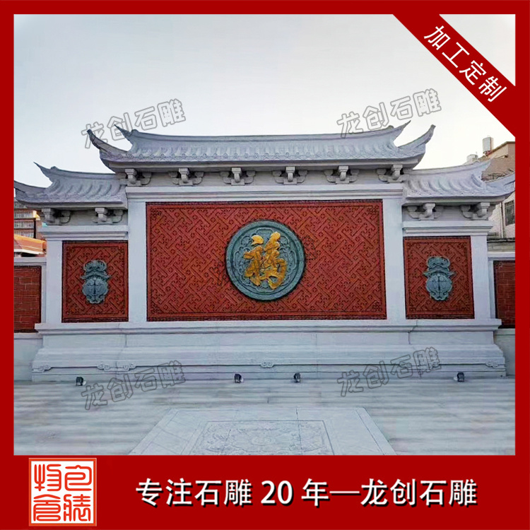 石雕照壁的樣式豐富多樣,根據歷史時期、地域特色和審美需求等因素,可以大致分為壁頂式、浮雕式、文字式、鑲嵌式和彩繪式等。每種樣式都有其獨特的美感和寓意,為場所增添了裝飾效果,也傳遞著人們對美好生活的向往和追求。