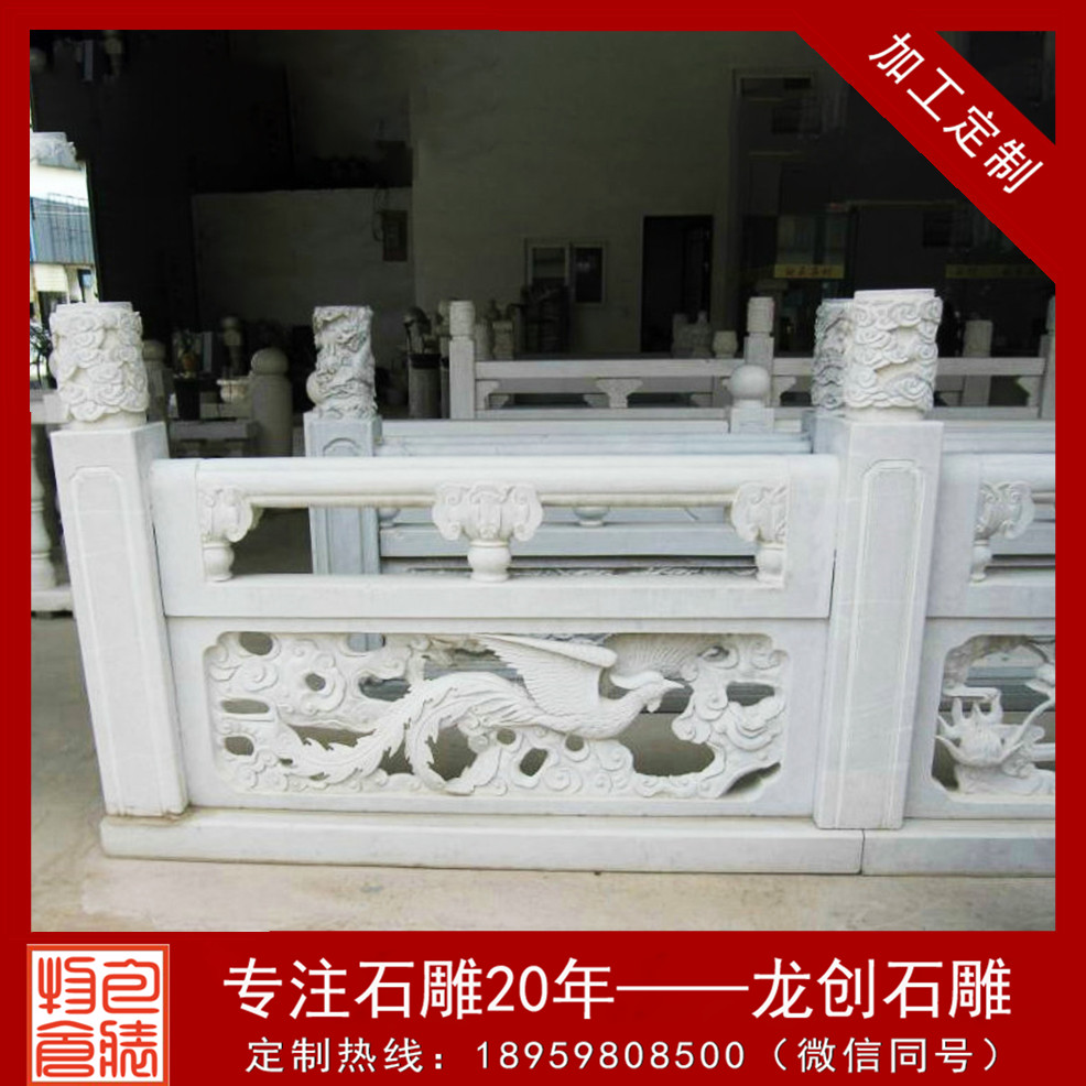 二、石材欄桿的雕琢工藝:雕琢工藝的難易水平也是影響石材欄桿價錢的重要要素之一。普通我們依據客戶提供的雕琢設計圖停止加工,常見的雕琢工藝有浮雕、線雕、透雕、陰雕、圓雕、鏤雕等等。有的石材欄桿用線雕,有的石材欄桿用浮雕,固然規格相同,但是由于雕琢的工藝不同形成耗費的工時不同,石材欄桿價錢自然也是不一樣的。
