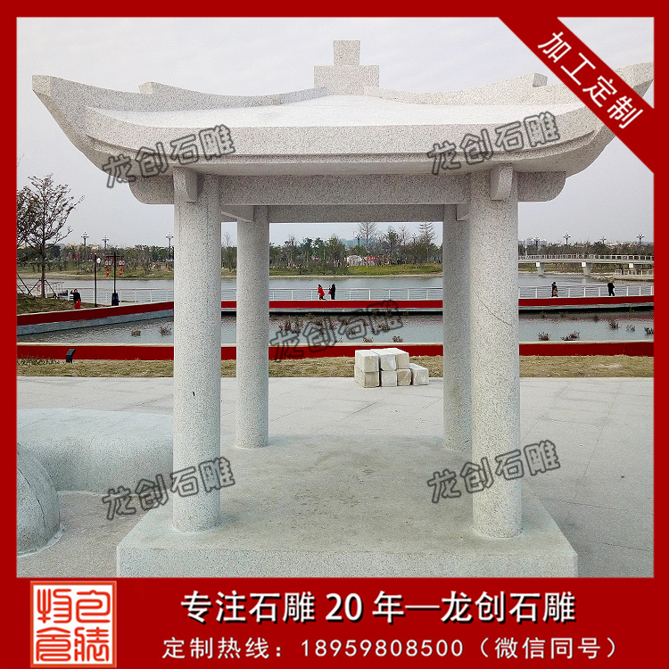 一般來說石質的亭子(石雕亭子)是比較常見的,它不僅外觀美觀,而且堅固,給人以一種美好的意境,身臨其境時更是無法述說的情懷。石雕亭子的形態多種多樣,有六角型、四角型、圓型等,石雕亭子是中華民族文化的傳承,它能表達許多精神。石雕亭子的文化源遠流長,影響著每一代人對古老文化的向往。