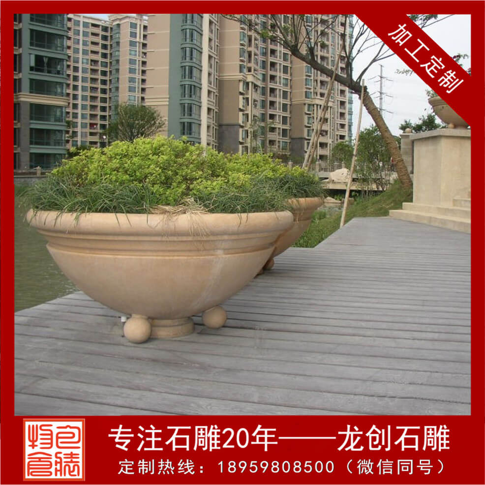 被精雕細(xì)琢而成的天然石雕花盆。形狀逼真,許許如生。適用于小區(qū),廣場(chǎng),園林,酒店,校園,野外園林景觀工程等場(chǎng)所。這些花盆靈活多樣,隨處可用,尤其對(duì)于城鄉(xiāng)建筑比較密布和其他一些難于綠化地區(qū)的美化,有著特別的含義。美化環(huán)境時(shí),可根據(jù)缽、盆款式、巨細(xì)的不同,進(jìn)行多種多樣的藝術(shù)組合。