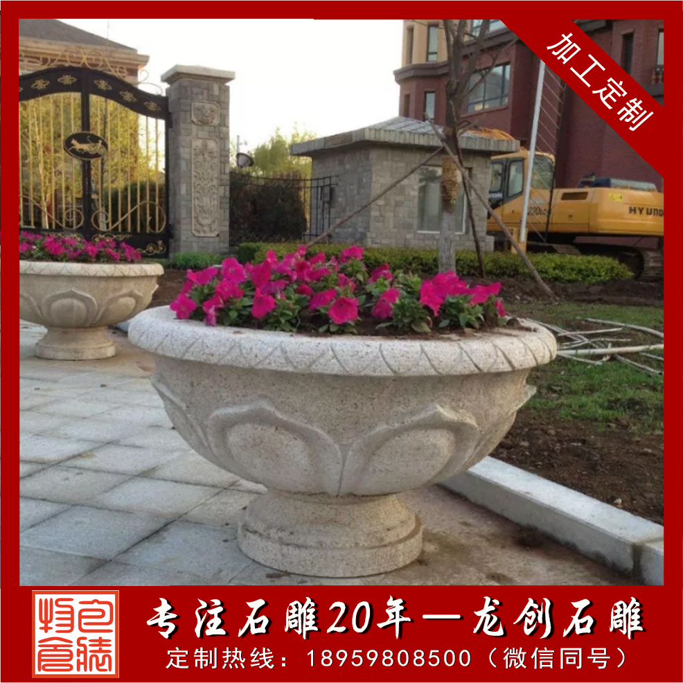 石雕花缽、石材花缽是通過石材雕刻制作而成的花盆雕塑作品,一般以砂巖、青石、花崗巖、大理石為材質(zhì),造型上大都以浮雕畫進行盆壁的裝飾修飾。石材花缽既有花盆的實用性,又有很好的裝飾性,且質(zhì)地堅硬致密、強度高、抗風化、耐腐蝕、耐磨損、吸水性低,顏色美觀,格調(diào)高雅,保養(yǎng)方便簡單,使用壽命長。以下介紹幾款常見石材花缽種類